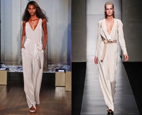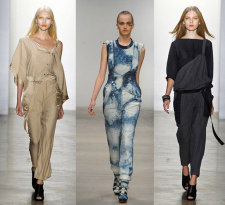 В 2012 году будут преобладать джинсовые, шелковые и атласные модели. Что касается фасона, то актуальны как обтягивающие, так и расклешенные комбинезоны. Основной акцент дизайнеры сделали на декорировании капюшонами, кантами, пуговицами и «молниями».
