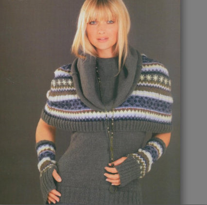 Очень понравился свитер- пелерина, очень свежо и оригинально.