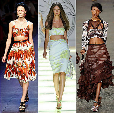 Так модные бренды – Chanel, Blumarinne, Missoni, D&G, Emilio Pucci, Proenza Schouler советуют надевать модные топы 2012 с длинными, короткими или пышными юбками по колено, а также с шортами.
