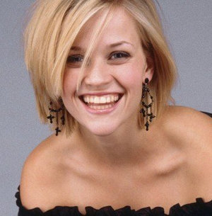 Любимая укладка Риз Уизерспун – волосы с помощью утюжка становятся идеально гладкими, блестящими, прямая челка спадает на глаза. Такие прически придают свежести и молодости.